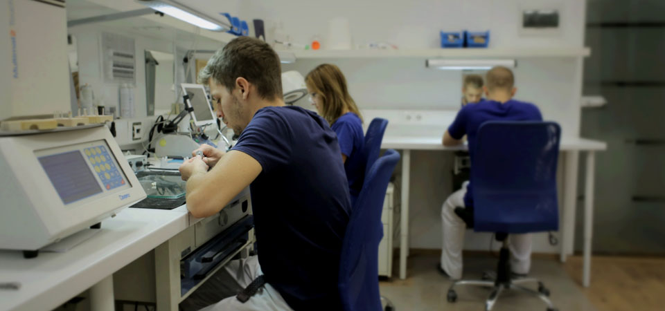 Wir können auf ein direkt bei uns im Haus befindliches modernes eigenes Zahntechniklabor zugreifen. Somit können wir Präzisionsarbeiten in Spitzenqualität ausführen und haben die Möglichkeit, Premium-Zahnersatz für Sie herzustellen.
